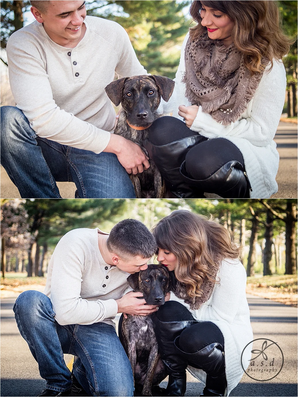 This past year I've had the most engagement sessions with dogs than ever. Sometimes people feel nervous about the idea of bringing their dog to the session for many reasons. They are afraid they will run around in random directions and it will be too exhausting, let alone impossible to make them stay still for the camera. And the idea of being outdoors around other people... 'nuff said.